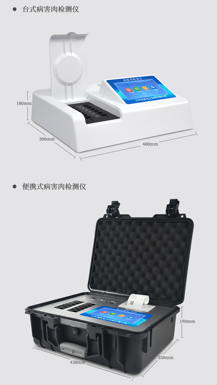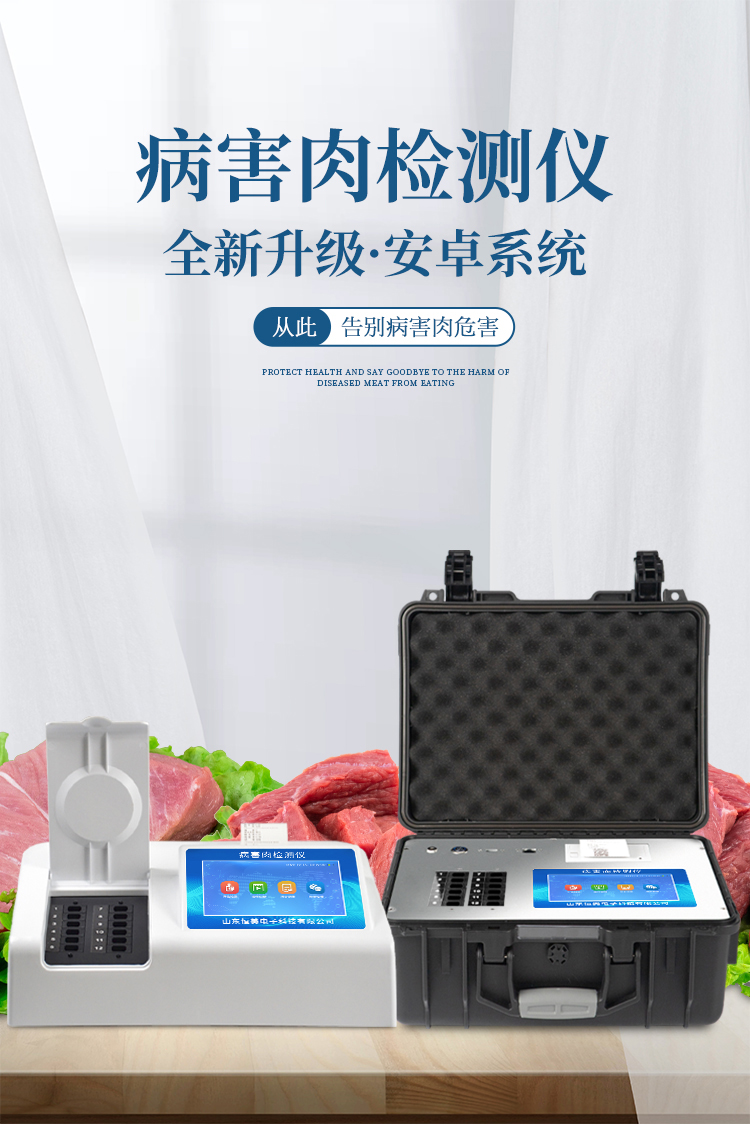 可快速檢測病害肉、組胺、揮發性鹽基氮,儀器預留其他項目檢測程序和端口,根據日后需求可方便的自主增加檢測項目。