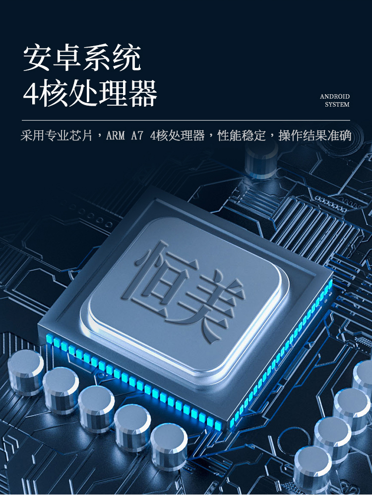 1、主控芯片采用ARM Cortex-A7,RK3288/4核處理器,主頻1.88Ghz,運轉速度更快速,穩定性更強。