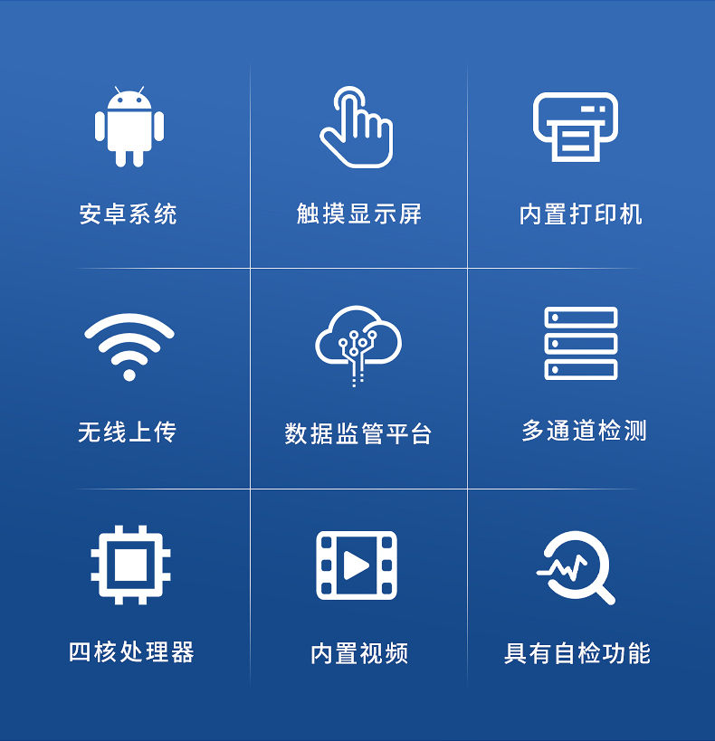 1、安卓智能操作系統,采用更加高效和人性化操作,儀器具有網線連接、wifi聯網上傳、GPRS無線遠傳功能,快速上傳數據。