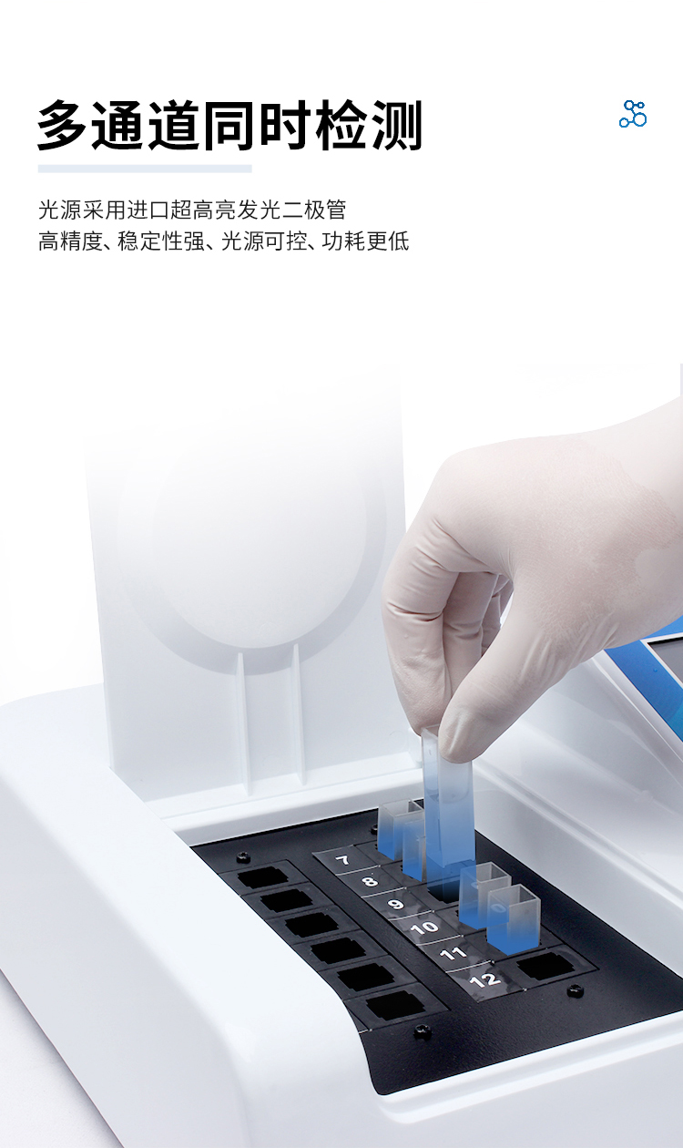 3、四波長冷光源,每個通道均配置410、520、590、630nm波長光源,標配先進的光路切換裝置,專利光路切換功能可實現*多64波長,并且所有檢測項目可實現所有通道同時檢測。