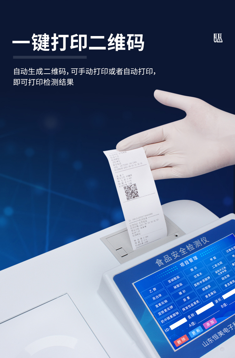 5、配備新一代嵌入式熱敏打印機,可選擇手動打印或者自動打印,檢測完成可自動打印檢測報告和二維碼。