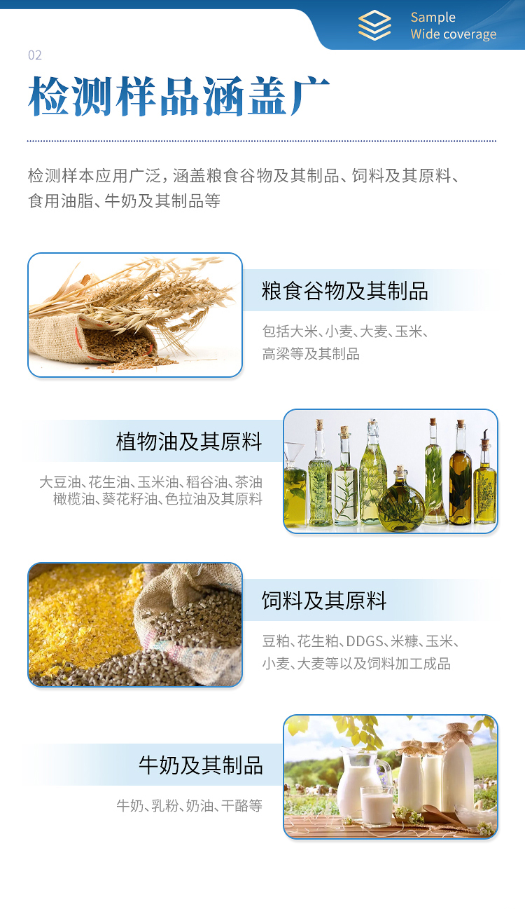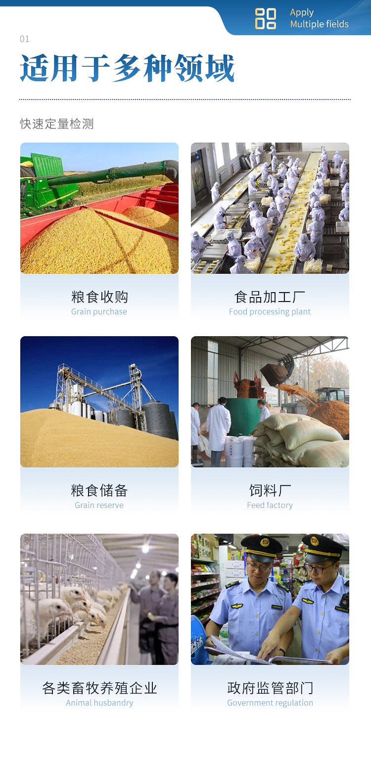 HM-L02型糧食真菌毒素檢測儀采用熒光定量快速檢測原理,主要檢測糧油谷物飼料中真菌毒素含量,包括黃曲霉毒素B1、黃曲霉毒素M1、玉米赤霉烯酮、嘔吐毒素、伏馬毒素等等,檢測樣品涵蓋糧食谷物(大米、玉米、小麥、大麥、高粱等)及其制品、飼料及其原料、食用油脂、牛奶及其制品等;樣品前處理簡單,整個檢測過程檢測12min,產品適用于地方糧庫、谷物生產企業、飼料廠、各類畜牧養殖企業、面粉廠、食品加工廠、第三方檢測機構及各級政府監管部門。