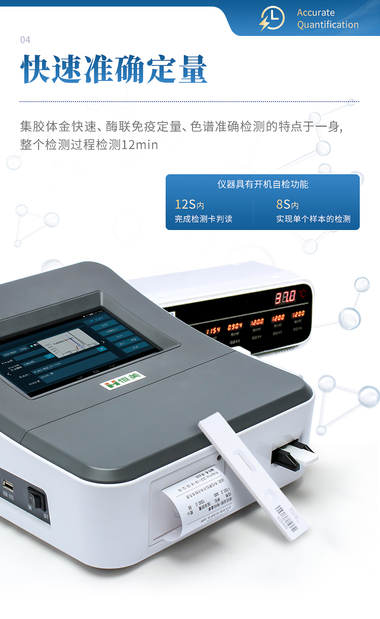2、快速準確定量:集膠體金快速,酶聯免疫定量、色譜準確檢測的特點于一身,實現快速準確定量檢測;