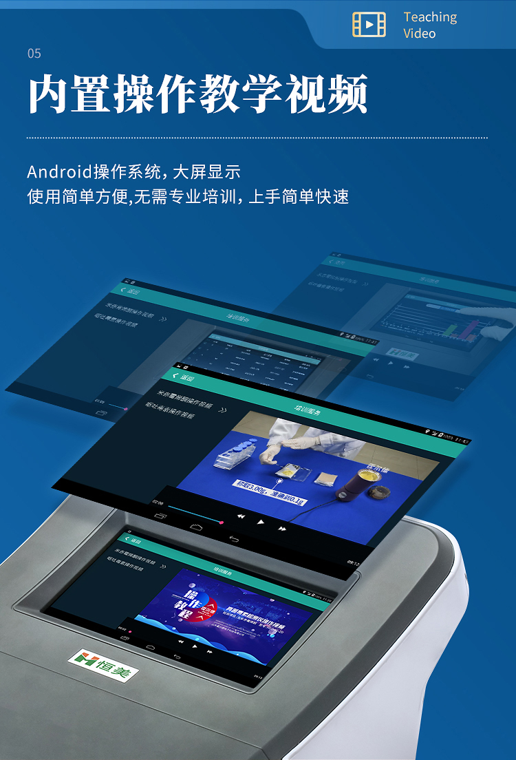 7、使用簡單方便:儀器內置檢測項目操作視頻,無需專業培訓,邊觀看儀器內置操作視頻,邊做實驗,上手簡單快速。