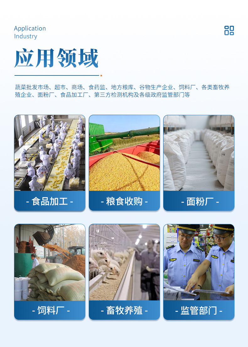 熒光定量檢測(cè)儀采用熒光定量快速檢測(cè)原理,主要檢測(cè)糧油谷物飼料中真重金屬鉛和鎘,檢測(cè)樣品涵蓋糧食谷物(大米、玉米、小麥、大麥、高粱等)及其制品、飼料及其原料、食用油脂、牛奶及其制品等;樣品前處理簡(jiǎn)單,整個(gè)檢測(cè)過(guò)程檢測(cè)12 min,產(chǎn)品適用于地方糧庫(kù)、谷物生產(chǎn)企業(yè)、飼料廠、各類畜牧養(yǎng)殖企業(yè)、面粉廠、食品加工廠、第三方檢測(cè)機(jī)構(gòu)及各級(jí)政府監(jiān)管部門;