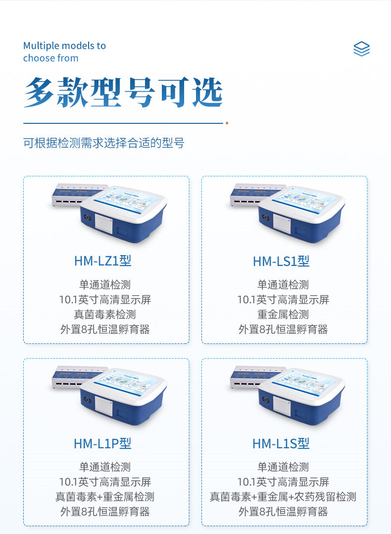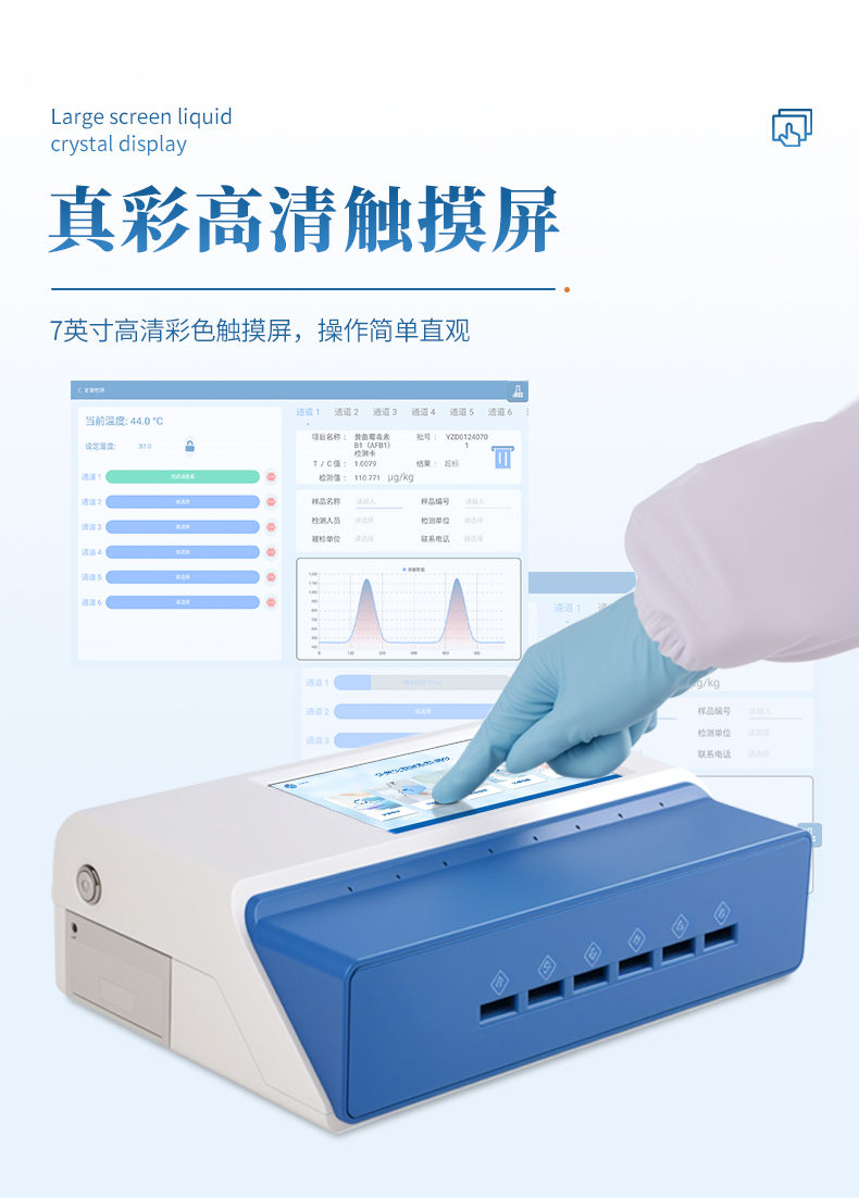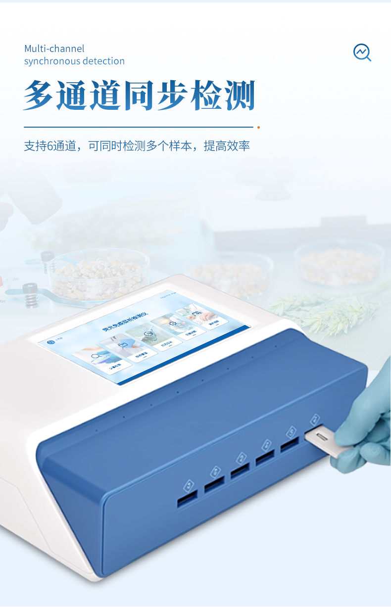 4、 內(nèi)置定量標(biāo)準(zhǔn)曲線:儀器內(nèi)置標(biāo)準(zhǔn)曲線,無(wú)需使用標(biāo)準(zhǔn)品,檢測(cè)時(shí)無(wú)需做標(biāo)準(zhǔn)曲線,既節(jié)省了成本,也避免了操作人員與嘔吐毒素的接觸,保護(hù)操作人員的安全;