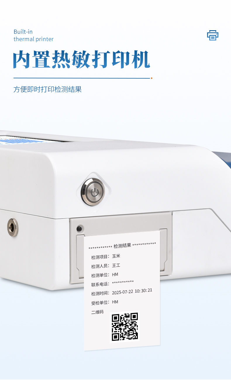 7、 內(nèi)置熱敏打印機(jī),可及時(shí)打印檢測(cè)信息,檢測(cè)數(shù)據(jù)可上傳監(jiān)管平臺(tái)功能。