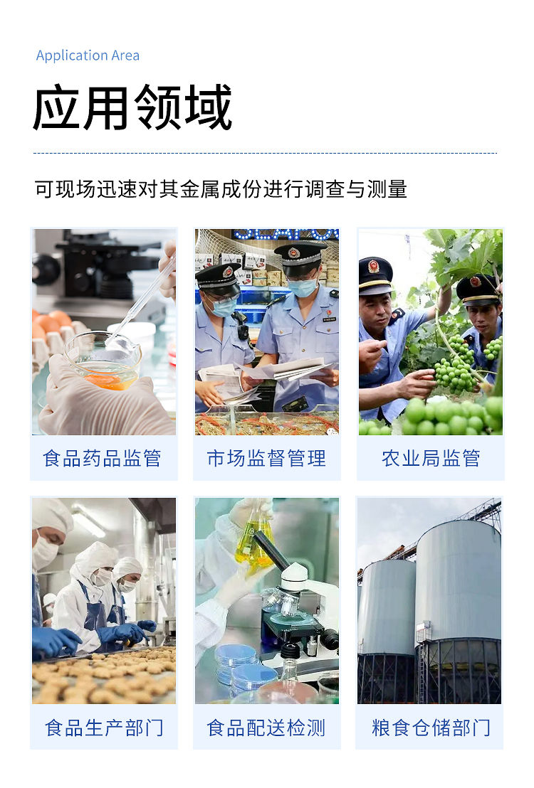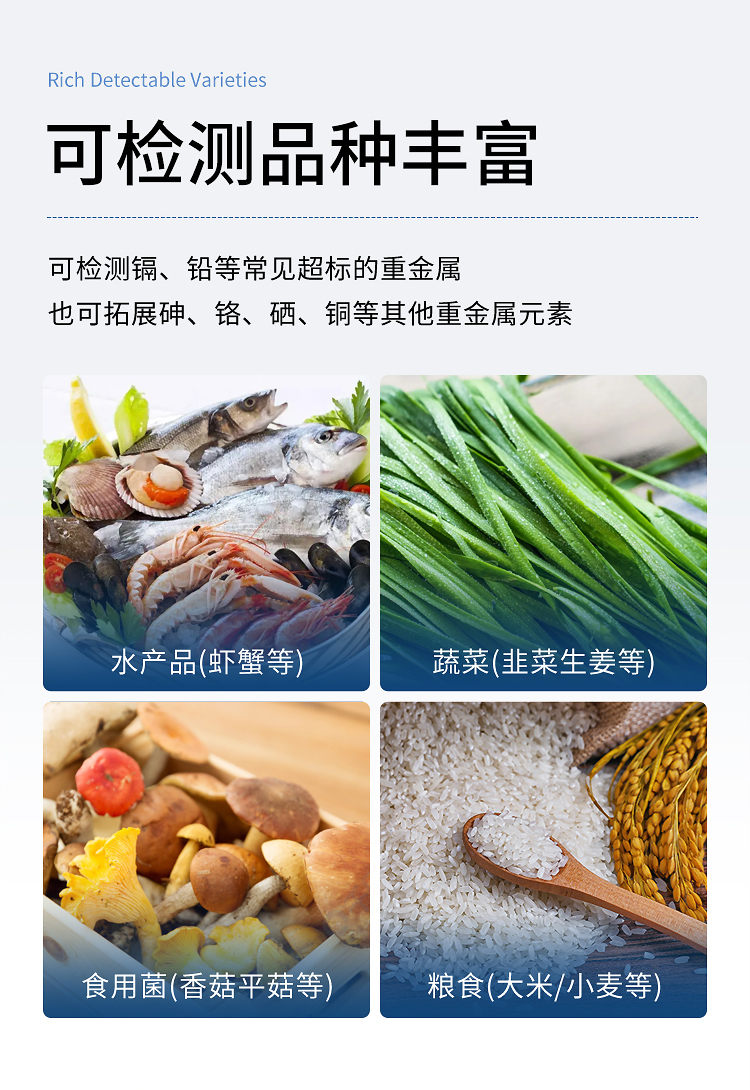 5、應用范圍廣,同時適用于農產品、水產品、加工食品的重金屬現(xiàn)場或實驗室快速分析。