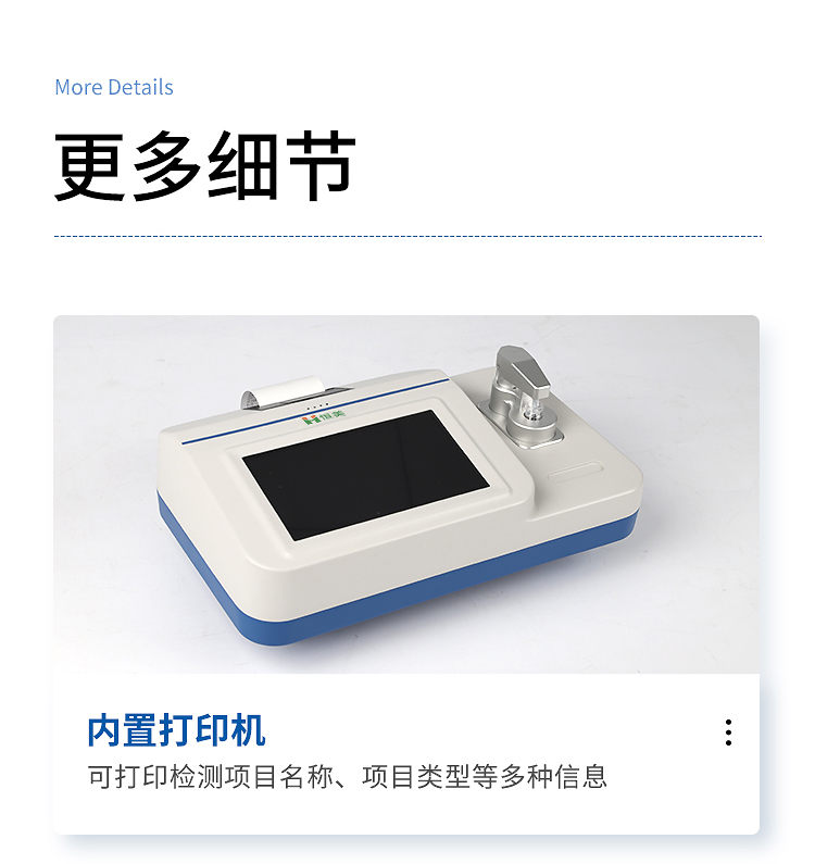 8、儀器內置打印機,可打印檢測項目名稱、項目類型、檢測結果、檢測人員、送檢單位、送檢人員、限量標準等信息;