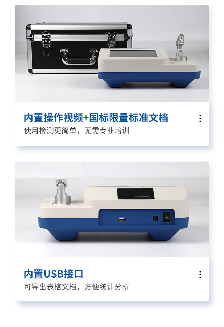4、儀器內置操作說明書文檔和操作視頻,使用檢測更簡單,無需專業(yè)培訓,適用于非專業(yè)人員現(xiàn)場檢測;