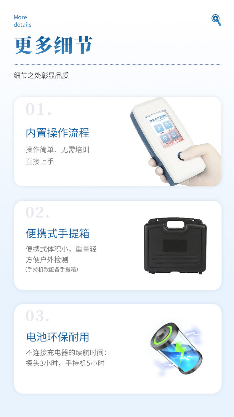 4. 不連接充電器的續(xù)航時(shí)間:探頭3小時(shí)。