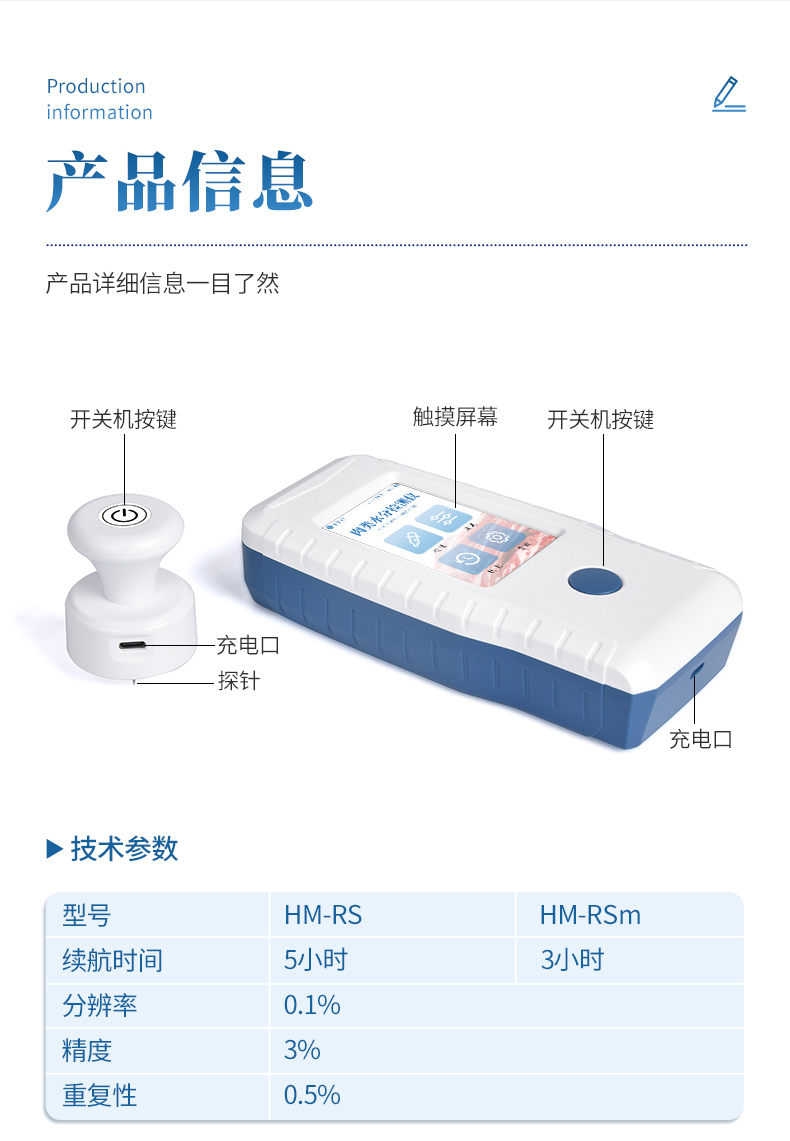 肉類水分快速測(cè)定儀通過向樣品注入高頻電信號(hào)并接收回波測(cè)量生肉含水量,相比GB18394-2020國(guó)標(biāo)文件中的5.2節(jié)紅外線干燥法(快速法)更快速便捷,具有不需要制備樣品,檢測(cè)迅速,操作方便的優(yōu)點(diǎn)。