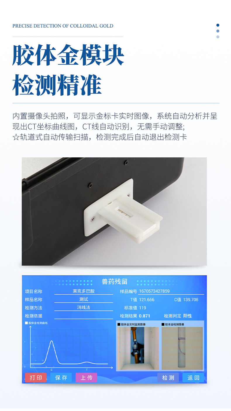 6、膠體金模塊檢測方式:軌道式自動傳輸掃描,檢測完成后自動退出檢測卡。