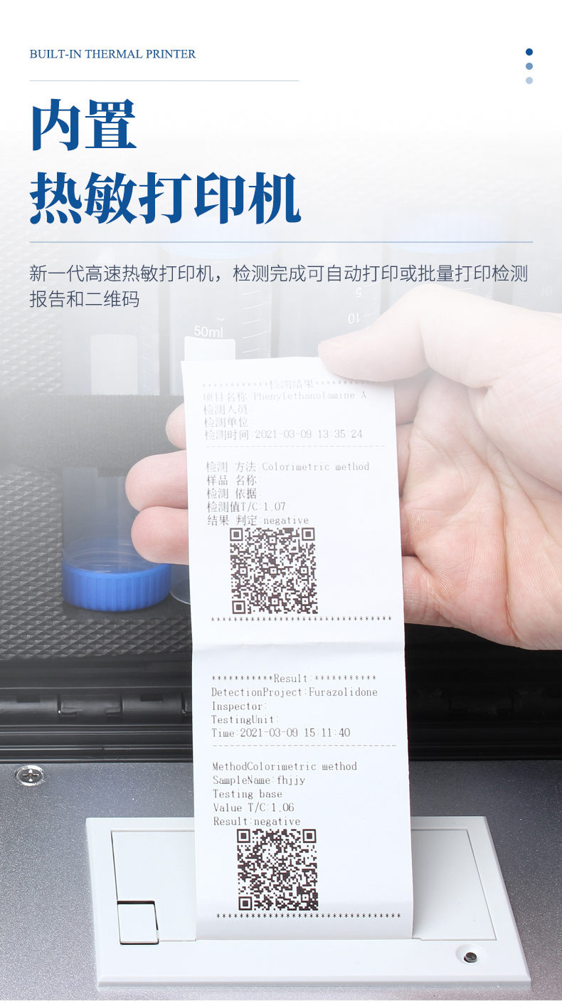 11、新一代高速熱敏打印機,檢測完成可自動打印或批量打印檢測報告和二維碼。