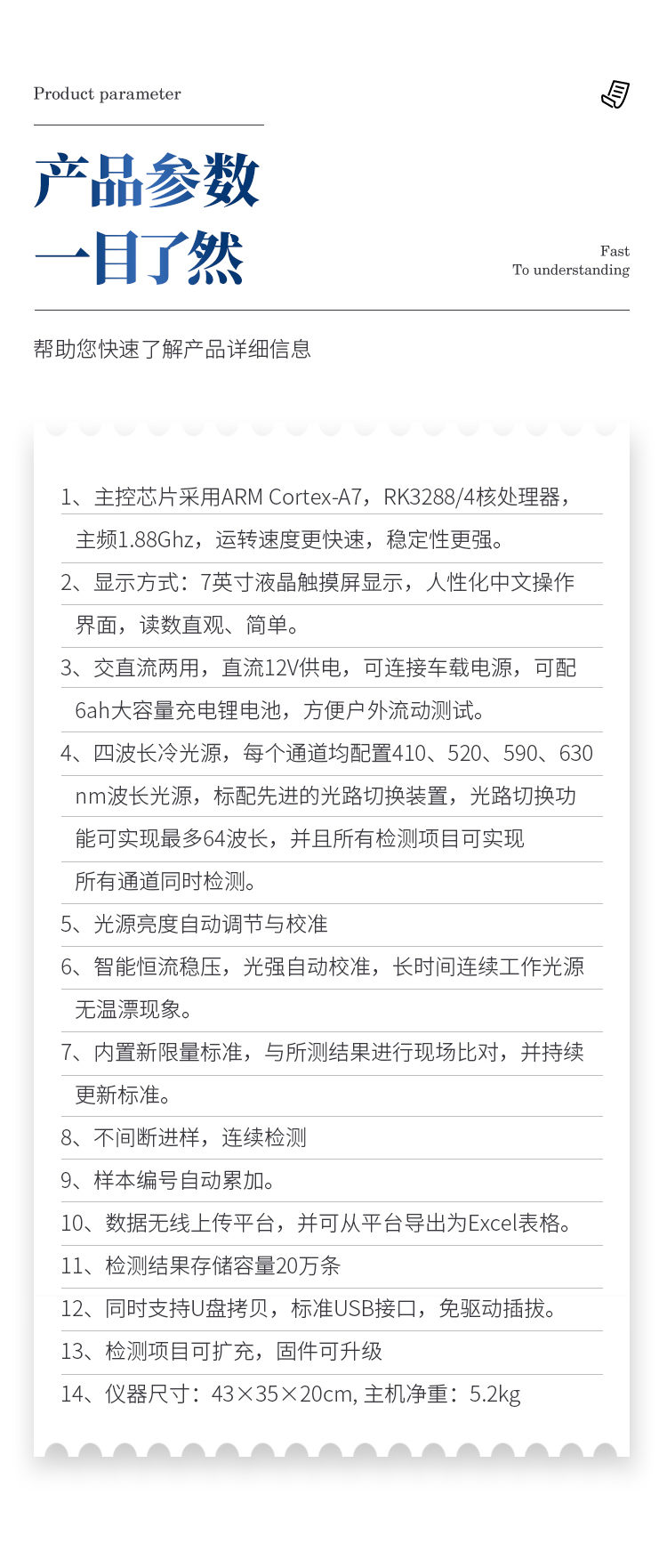 14、儀器尺寸:43×35×20cm, 主機凈重:5.2kg