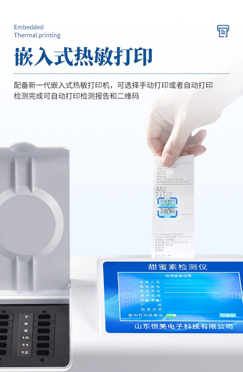 4、配備新一代嵌入式熱敏打印機,可選擇手動打印或者自動打印,檢測完成可自動打印檢測報告和二維碼。