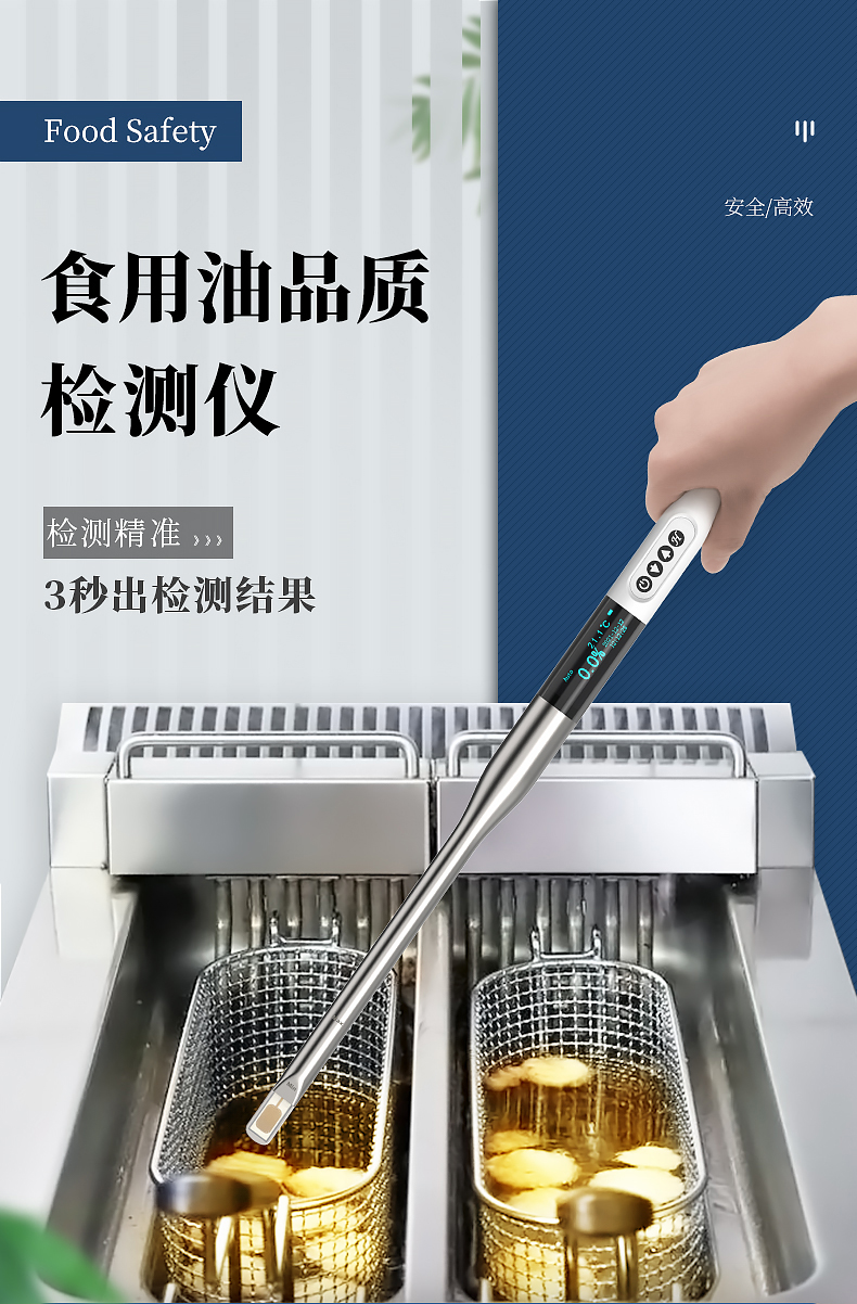 食用油脂是人們攝取能量和營養的重要來源,是加工食品的重要原料。油炸食品以其特有風味廣受消費者喜歡。用于煎炸的食用油在高溫煎炸過程中發生一系列的物理、化學變化,這些變化會生成對身體健康有害的物質。目前,煎炸食用油的傳統檢測方法多為化學方法,這些方法必須在實驗室內由專業人員操作,費時費力,化學試劑的使用可能會傷害檢測人員健康,且化學廢劑污染了環境。HM-SYP是一種快速,安全,高效食用油品質檢測儀,能夠快速檢測食用油中的極性化合物組分含量。本產品能夠在油溫較高的環境下使用,適用于各種煎炸的食用油品質檢驗。