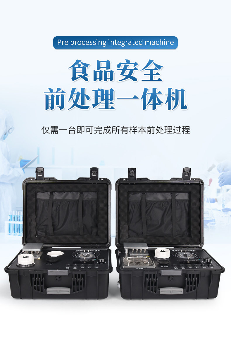 應國內用戶的實際需求,自行研制開發的新型儀器——QC05型樣品前處理一體機。樣品前處理集成箱將樣本前處理過程中樣品濃縮、水浴恒溫、離心分層、均質、振蕩混勻等步驟所需設備進行集成,僅需一臺樣品前處理集成箱設備即可完成所有樣本前處理過程,并且方便攜帶,不僅適用于現場檢測使用,還可用于色譜、質譜等分析樣品的純化和制備。