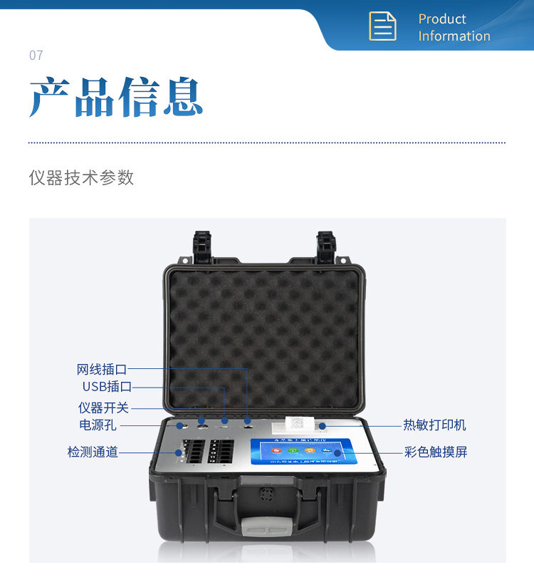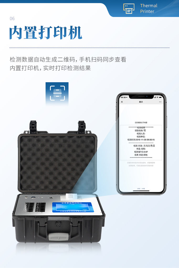 7、高速熱敏打印機,實時打印檢測結果。內置大容量電池,便于現場執(zhí)法檢測。